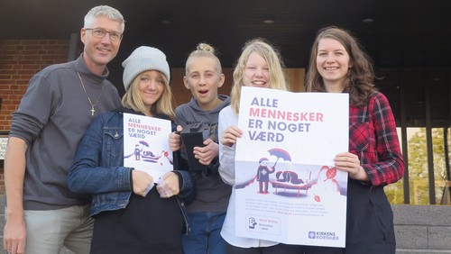 ”Tak for jeres fine indsats!" siger leder Gitte Dueholm. Det var bidende koldt, men fire seje konfirmander og tre voksne gik ud på villavejene omkring Jakobskirken og samlede 4.000 kr. ind på to timer. Dertil kommer beløbet fra MobilePay, som endnu ikke er gjort op.