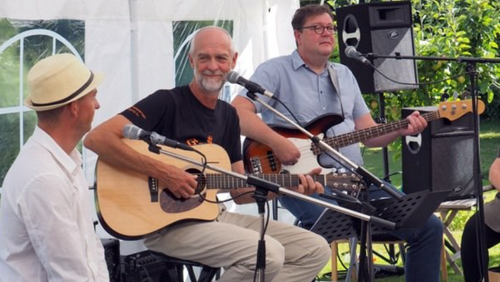 Peter Ankerfeldt underholder med sang og musik på opfordring af mange medlemmer.