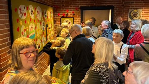 Det blev en festlig og hjertelig fernisering, da det filtede billedtæppe blev afsløret d. 25. januar 2026. Værkets titel er 'Skabt sammen', for der er mange som har brugt deres fantasi, fingre og tæer i udformningen af motiverne og filtningen af ulden.